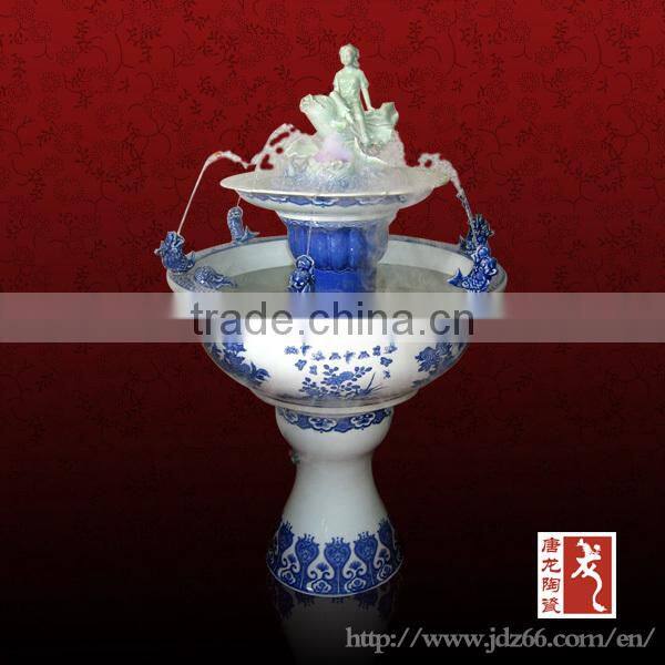 Blue and white porcelain excellent quality ceramic waterfalls for homes humidifier for best sale
