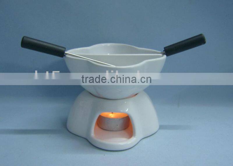 Description | flower shape ceramic chocolate dividing fondue pot |