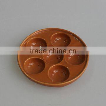 Ceramic Oyster Holder Divided Plate With Six Egg Holes