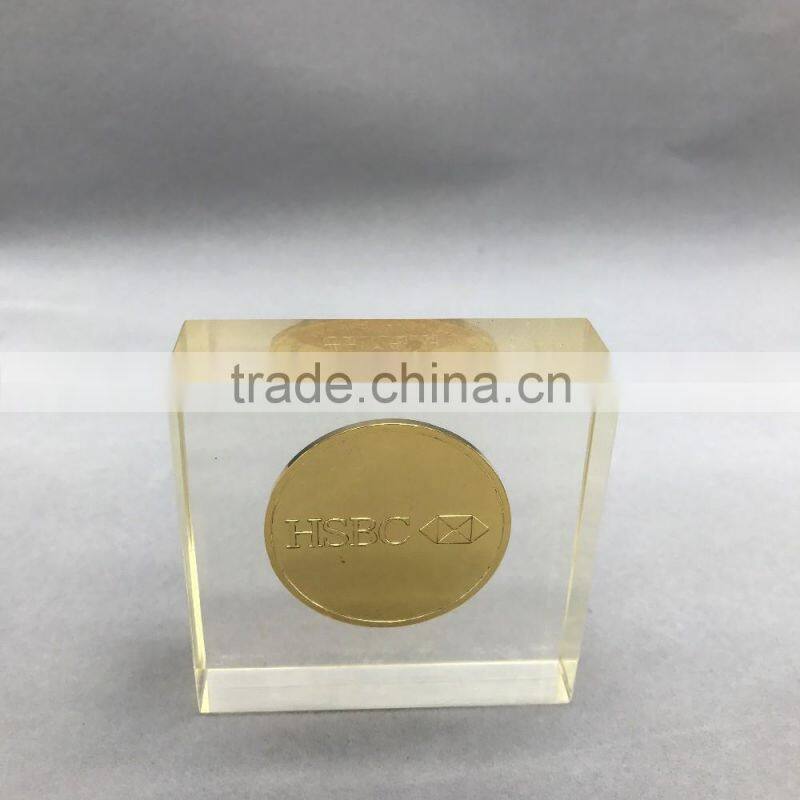 new fashion cheap acrylic desk paperweight acrylic coin case