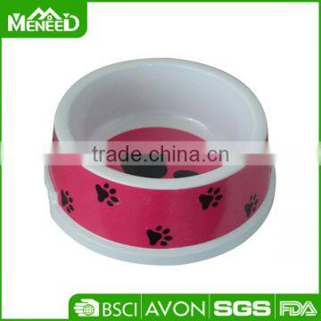 Meneed Melamine unique& supreme pink dog feet printed cheap plastic dog bowls