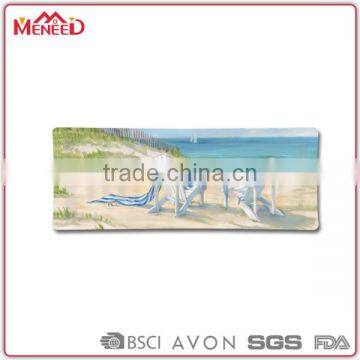 Western hot sale beach scenery prinitng rectangular melamine coin tray, plastic cash tray