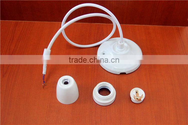 This porcelain pendant lamp set includes ceiling rose,lamp holder and the braided wire.They are mainly used for home decoration, hotel decoration, shopping mall, super market, restaurant, Cafe shop, club,bar etc.