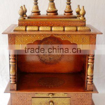 Hand Painted Copper Finish Mini Wooden Temple With 1 Drawer