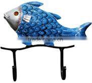 IRON PAINTED FISH HANGER 2 HOOK BLUE