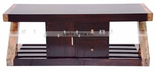 Western Look Wooden TV Table With Utility Drawers