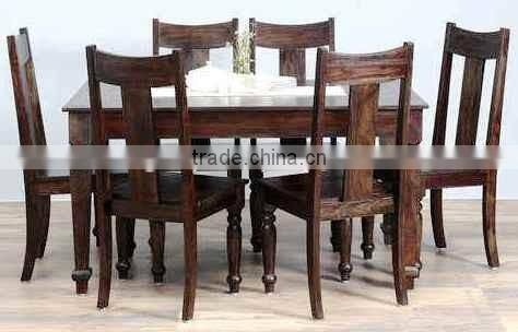 Indian Six Sitter Wooden Dining Table Set With Cushion Chair