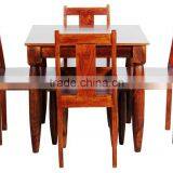 New Mahogany Color Finish Four Sitter Wooden Dining Table Set
