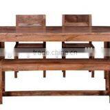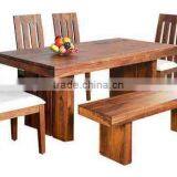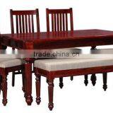 Solid Wood Natural Finish Six Sitter Wooden Dining Set With Bench