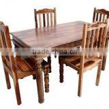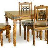 Indian Traditional Wooden Dining Table Set With Cushion Chair