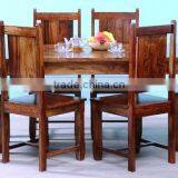 Mahogany Color Square Four Sitter Wooden Dining Table Set