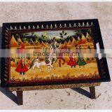 Indian Embossed Hand Painted Wooden Tray With Stand