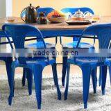 Blue Color Wooden Top Six Sitter Iron Dining Table Set