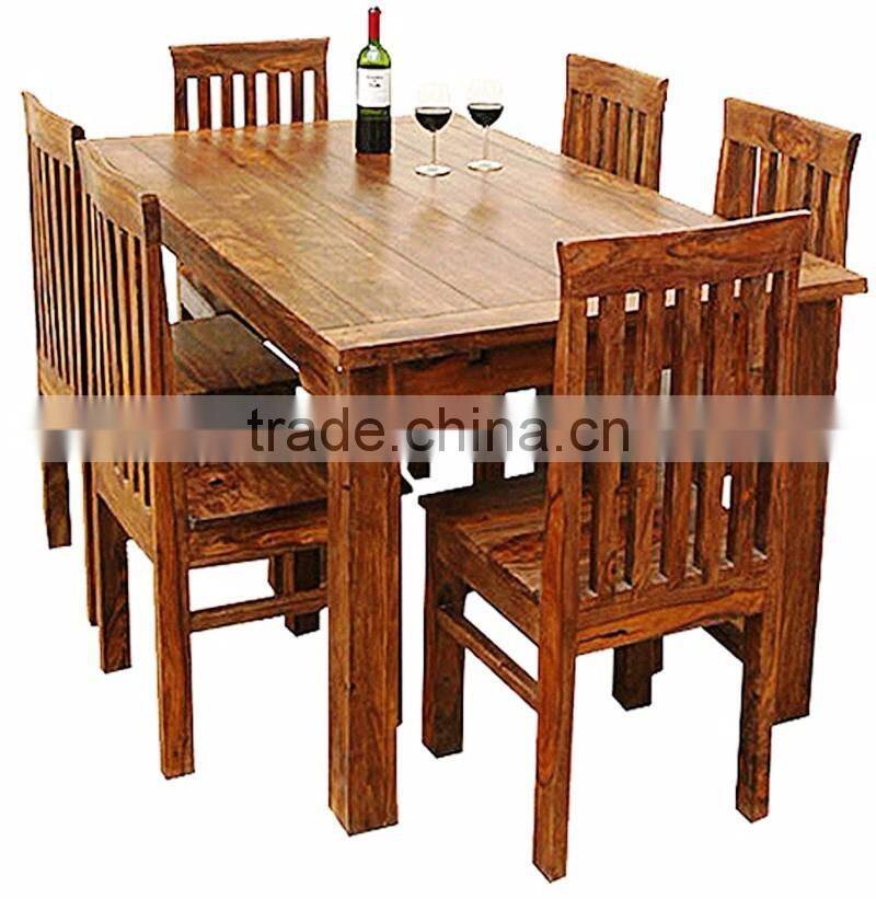Natural color six chair wooden dining table