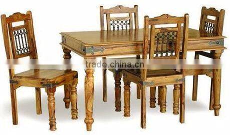 Home > Products > Indian Furniture Zone > Indian Traditional Wooden Dining Table With Four Chairs