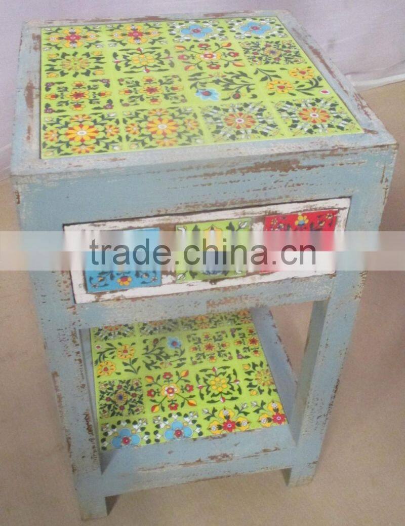 Natural 1 Drawer with Tile Fitting Wooden Bed Side Square Stool