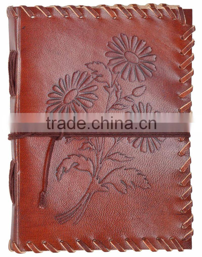 Handmade Vintage Side Stitch Embossed Flower Leather Notebook