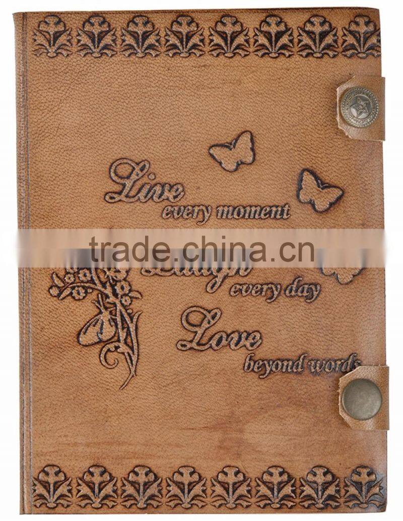 Handmade vintage embossed inspirational quote leather journal with button