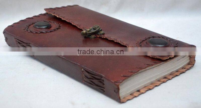 Home > Arts & Crafts > Leather Crafts > Handmade Vintage Dual Stone Embossed Leather Notebook With Clasp