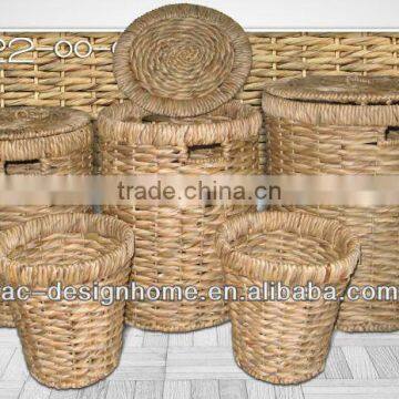 S/5 ROUND WATER HYACINTH HAMPER & WASTE BIN