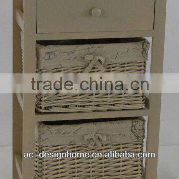 WILLOW/WOODEN CABINET W/1 WOODEN DRAWER & 2 WILLOW STORAGES