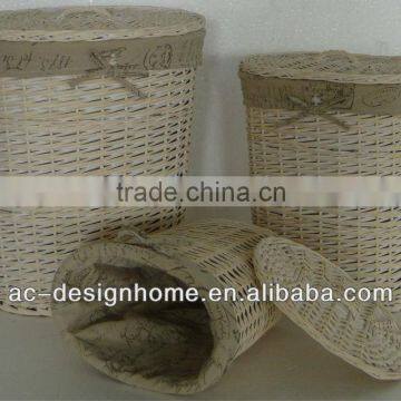 S/3 OVAL WILLOW HAMPER W/LID & LINER