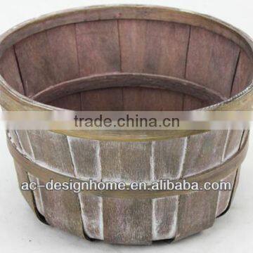 BROWN WASH ROUND BAMBOO CHIP BASKET