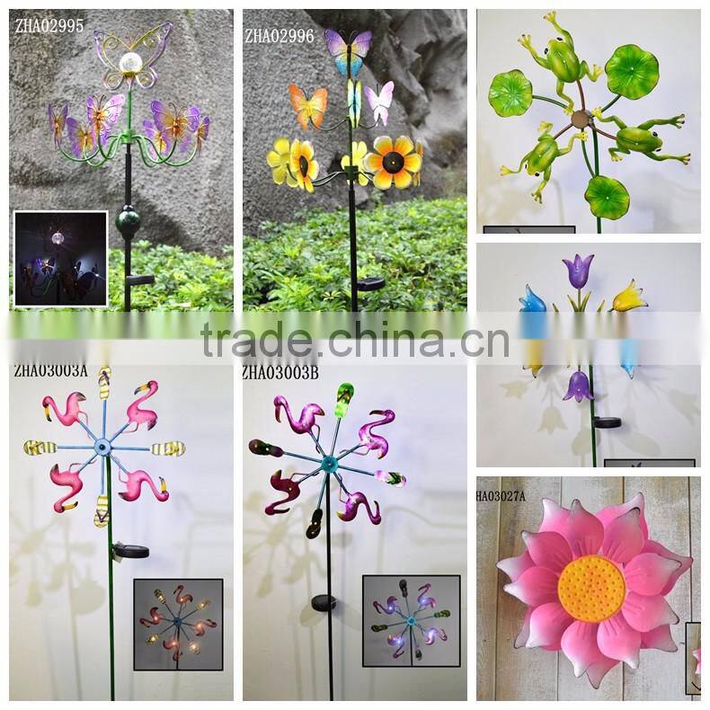 Free Sample 2017 New Design Solar Garden Stake for Garden Decoration Metal Wind Spinner