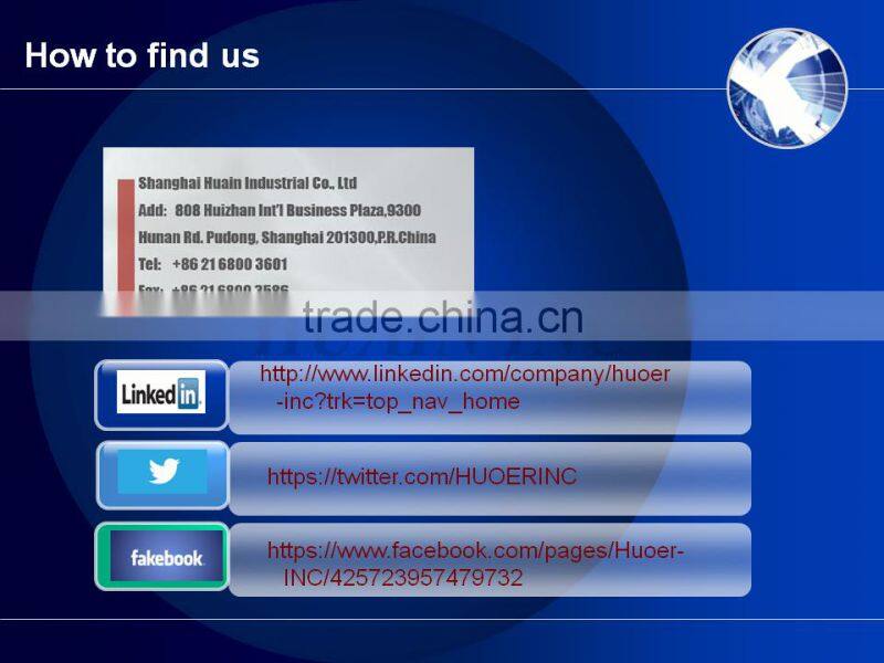 You could contact us via Alibaba TM, then you could get to know our contact method directly. Or you could reach us by phone, or get to know the contact information by our company website: /contact.html