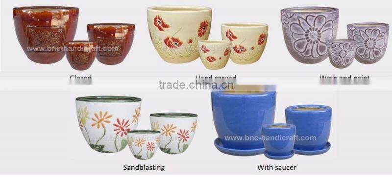 Besides, we have many designs with this shape such as glazed, hand carved, wash and paint, sandblasting, combining with saucer. They are available on our website: www.