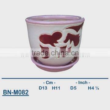 Vietnamese Ceramic Hand Carved Mini Flower Pot