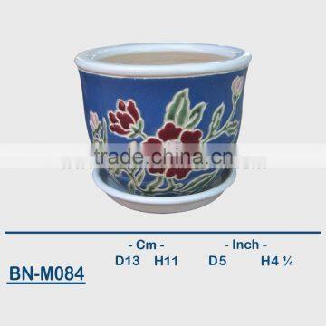 Vietnamese Ceramic Hand Carved Mini Flower Pot