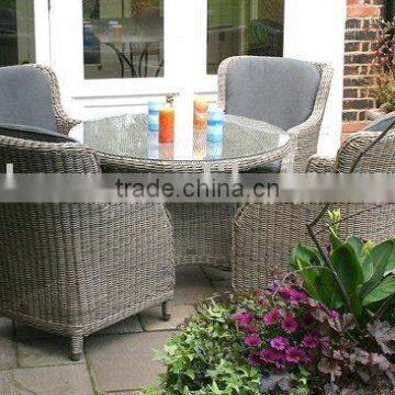 Materials: | Aluminium frame,Main tube φ25 mm Round PE rattan φ3 MM 180g polyester waterproof fabric, seat cushion thickness 6cm table top with 5mm clear tempered glass |
