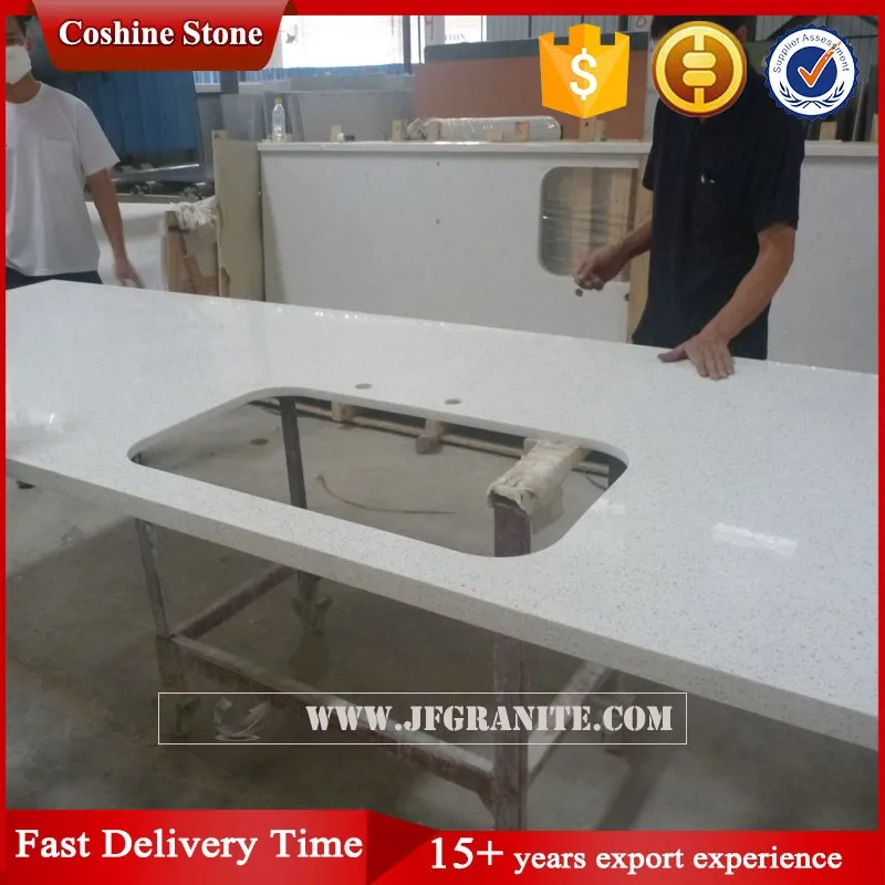 Popular Prefab Sparkle White Mirror Fleck Quartz Stone Countertop
