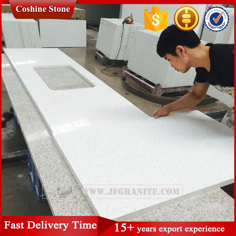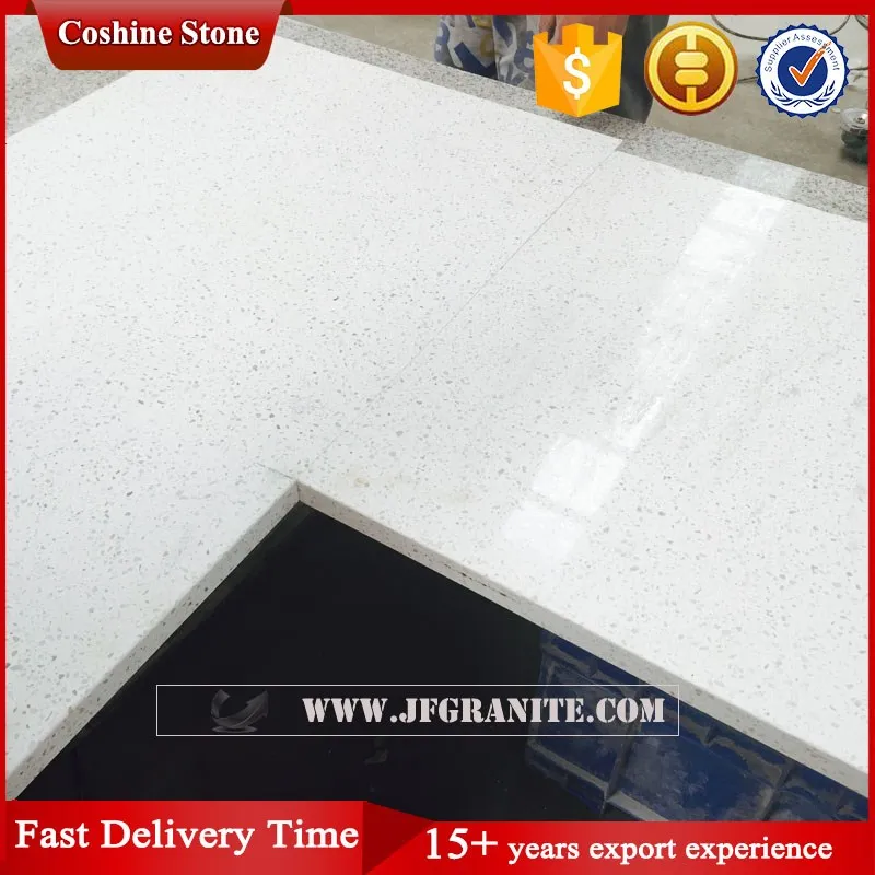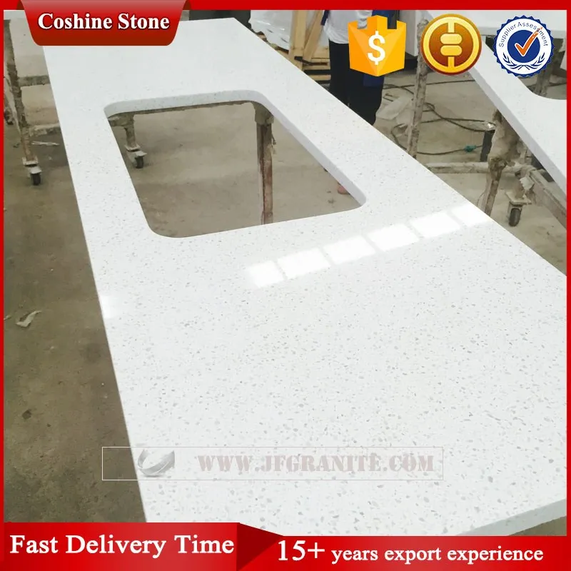 Popular Prefab Sparkle White Mirror Fleck Quartz Stone Countertop