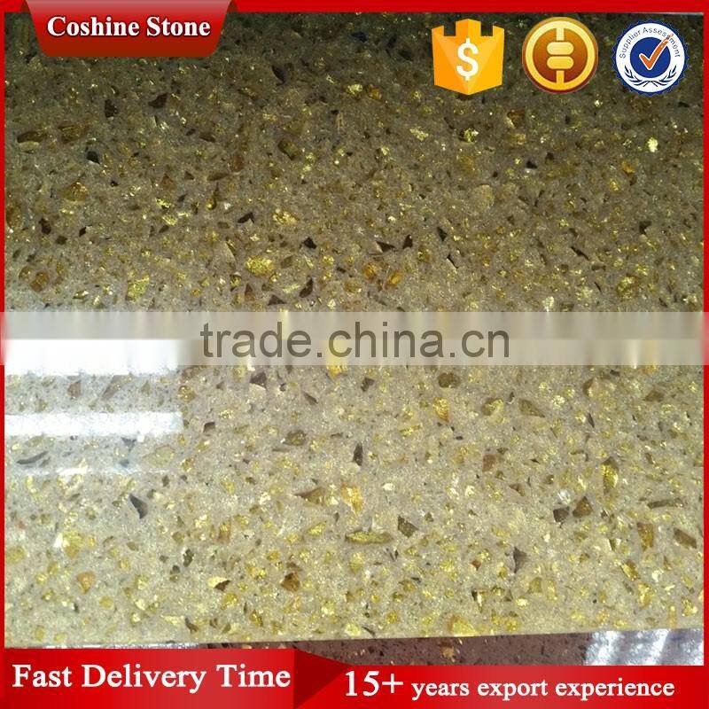 Crystal Shining Golden Artificial Quartz Stone Slab