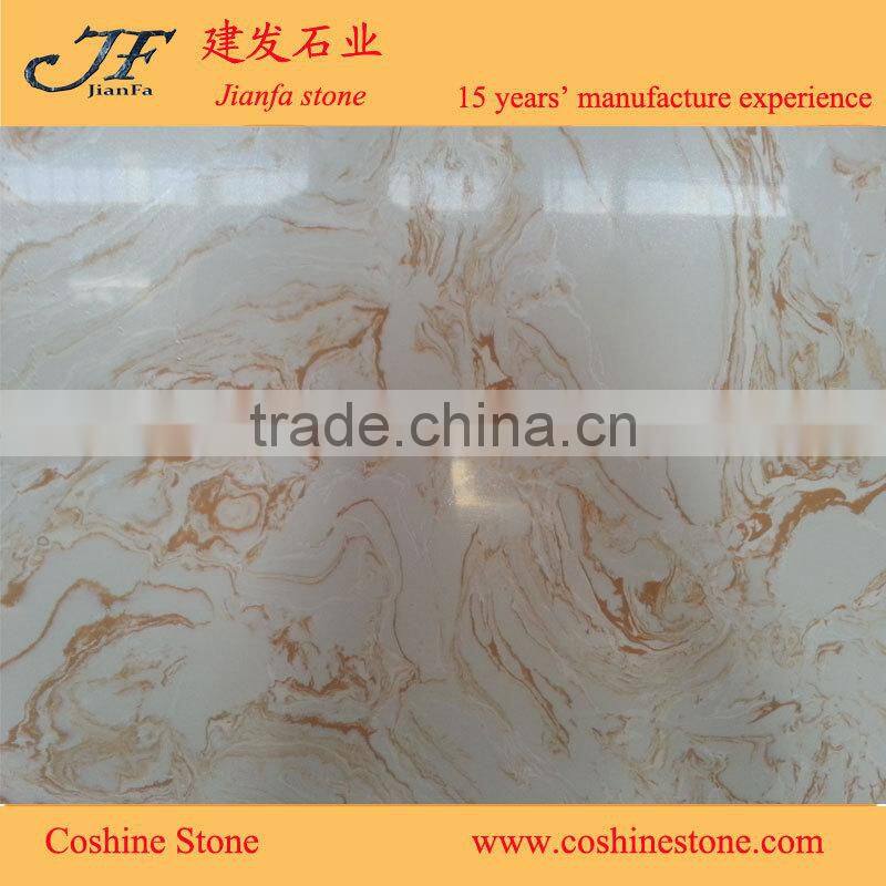 Artificial Yellow Color Marble Beige Flat Quartz Stone Countertop