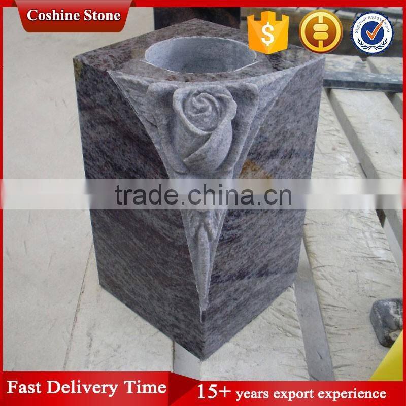 Home > Construction & Decoration > Slate, Marble, Granite & Stone > Tombstone & Monument > Cheap Small Flower Granite Vase With Rose Carving