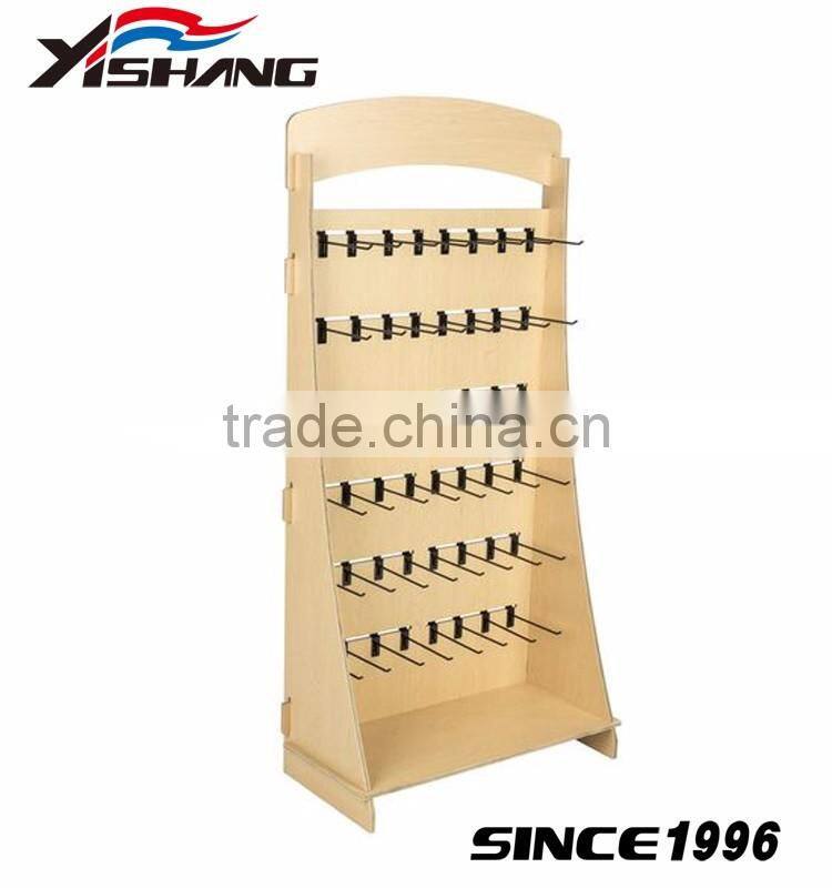Easy assemble wood display stand supermarket display rack wood display with hooks