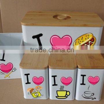 •These Wooden cover Kitchen Canister Set/4pcs , tea coffee sugar tins.
