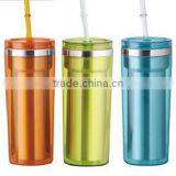 350ml/450ml Stainless Steel Inner Steel Outer Plastic Double Layer Cup With Straw
