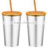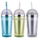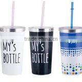 450ml Stainless Steel Inner Steel Outer Plastic Double Layer Cup With Straw