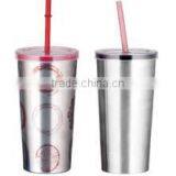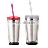 550ml Stainless Steel Inner Plastic Outer Steel Double Layer Cup With Straw