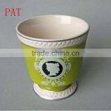 Stock Ceramic Flower Pot in Green Color Round Shape