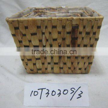 S/3 Square Waterhyacinth / rattan planter with plastic lining