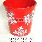 RED COLOR WITH WHITE FLOWER DECO TIN POT