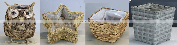 Owl Decor Bucket Nature Rattan Water Hyacinth Basket Plastic Planter