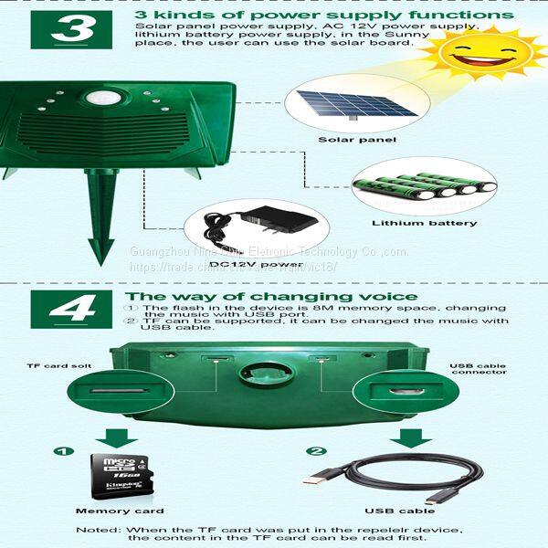 Home > Products > YD-Q3 Bird Repeller > Outdoor Animal Repeller Ultrasonic Solar Mice Bird Chaser