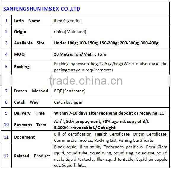 a. Illex squid, Todarodes pacificus, Black squid, Peru gaint squid, Peru squid neck, Peru squid tentacles, Illex squid tentecle, Peru squid piecesn& bits, Squid body, Squid head, Squid roe, Illex squid roe, Squid fillet, Squid pineapple cut, Squid ring, Squid ring skinon, Squid wing, Squid tube......