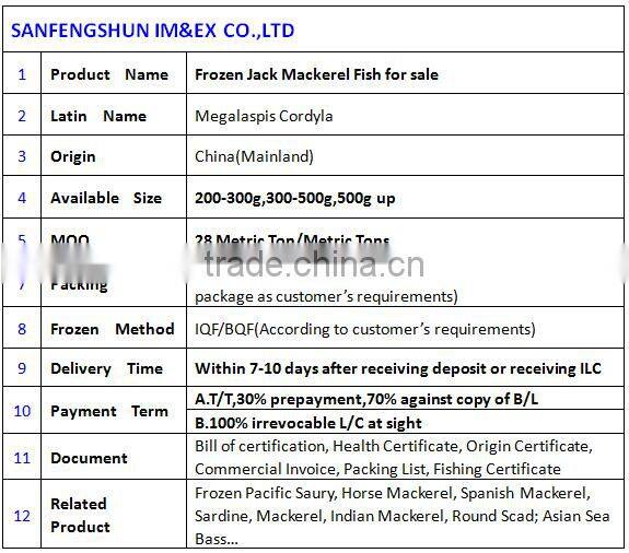 Frozen Jack Mackerel Fish for Sale